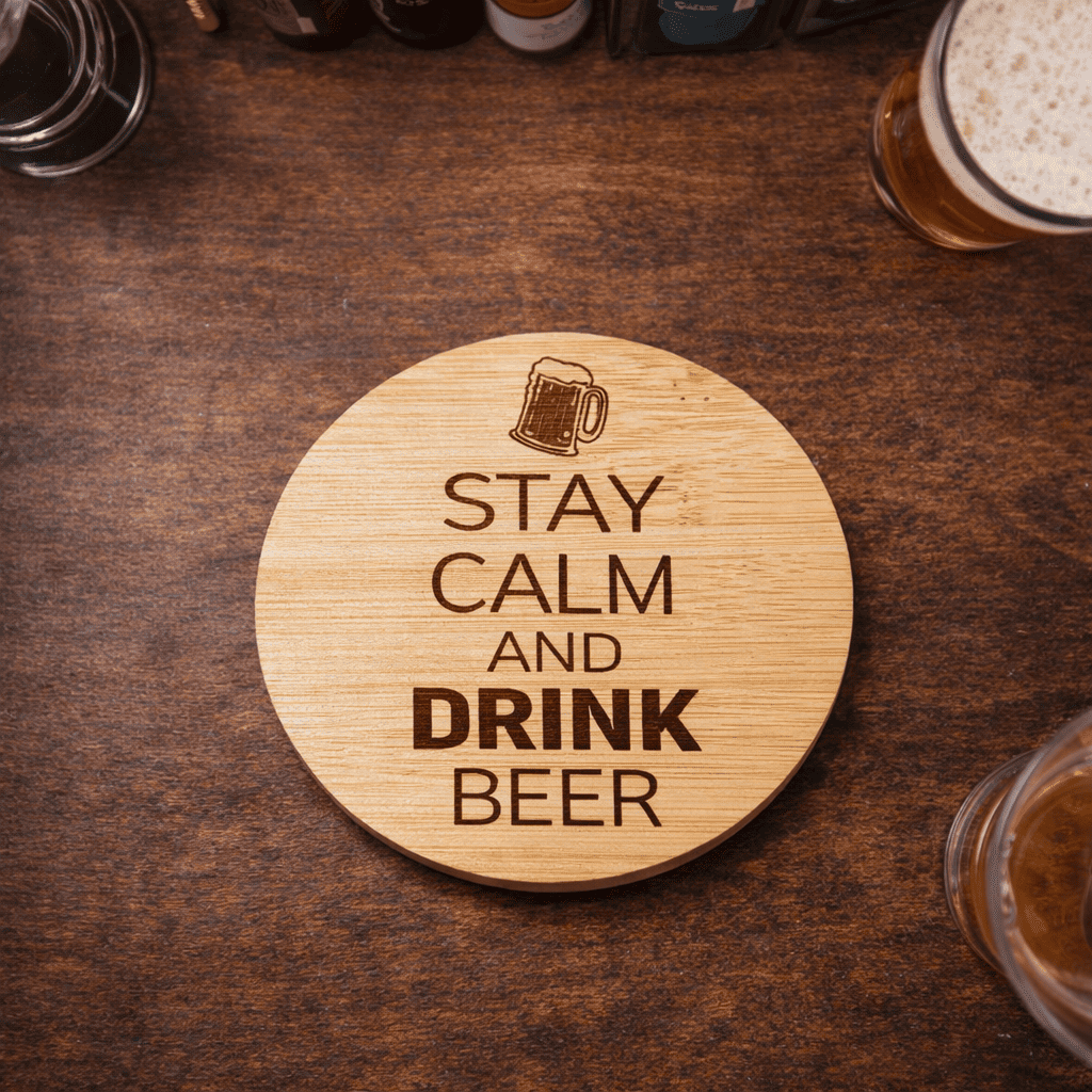 This engraved round wooden bottle opener features the bold “Stay Calm and Drink Beer” design — perfect for beer lovers who appreciate a good laugh and a cold pint.