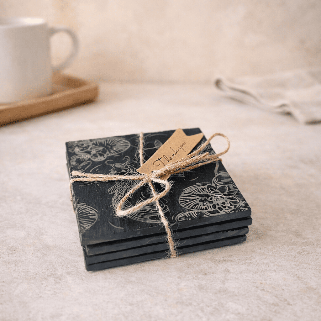 Each coaster is carefully engraved in the UK, making every piece slightly unique due to the natural variations in the slate.