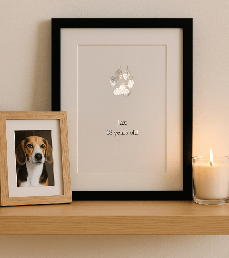 We can include up to two paw prints in one landscape A3 frame, making it perfect for siblings, bonded pets, or past and present companions.