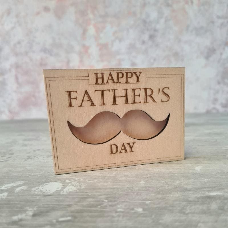 The wooden holder securely holds a gift card behind the moustache cut-out, making it a fun and thoughtful way to present a Father’s Day gift.