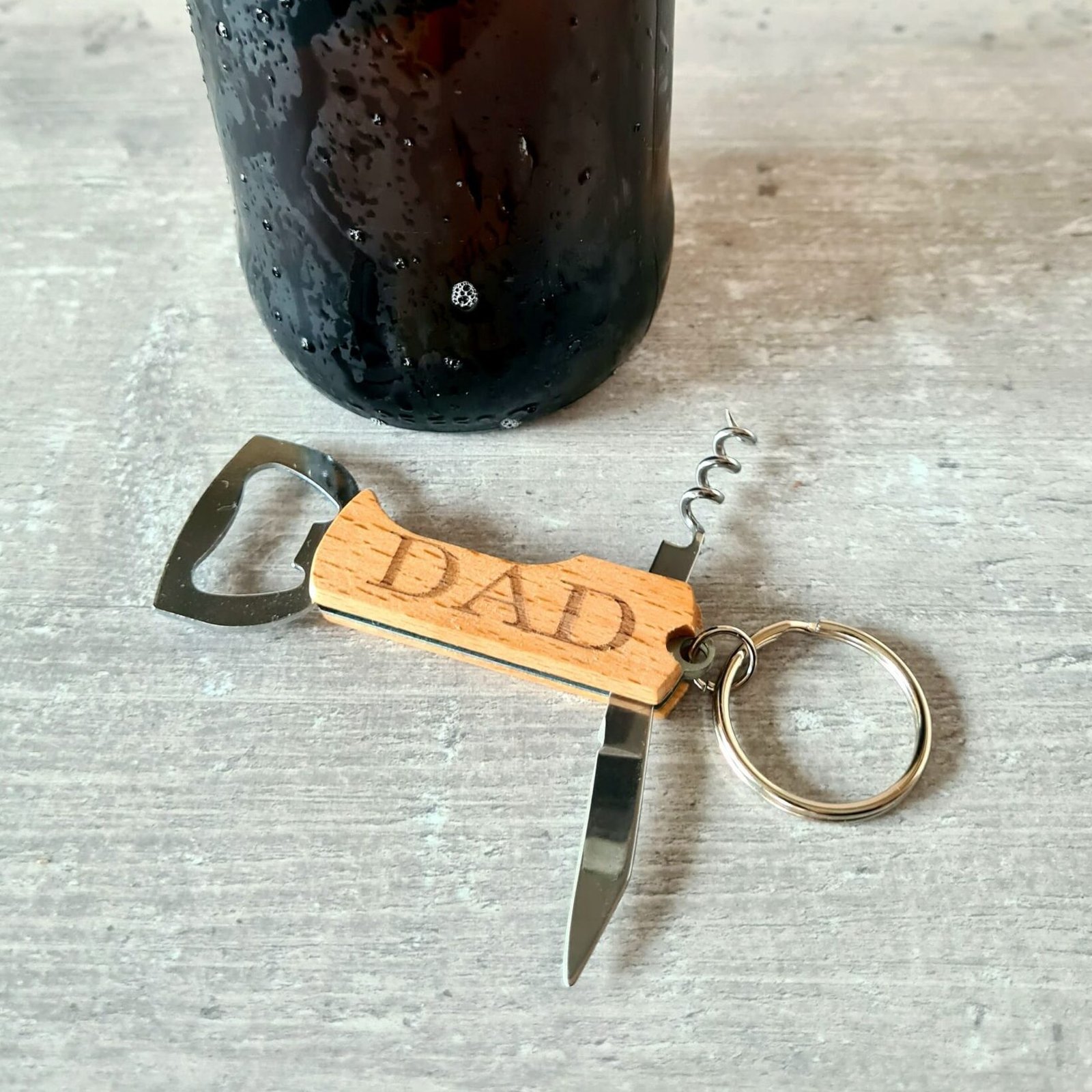Small enough to keep on your keys but useful enough for barbecues, camping trips, picnics or evenings with friends, this engraved keyring opener is both practical and personal.