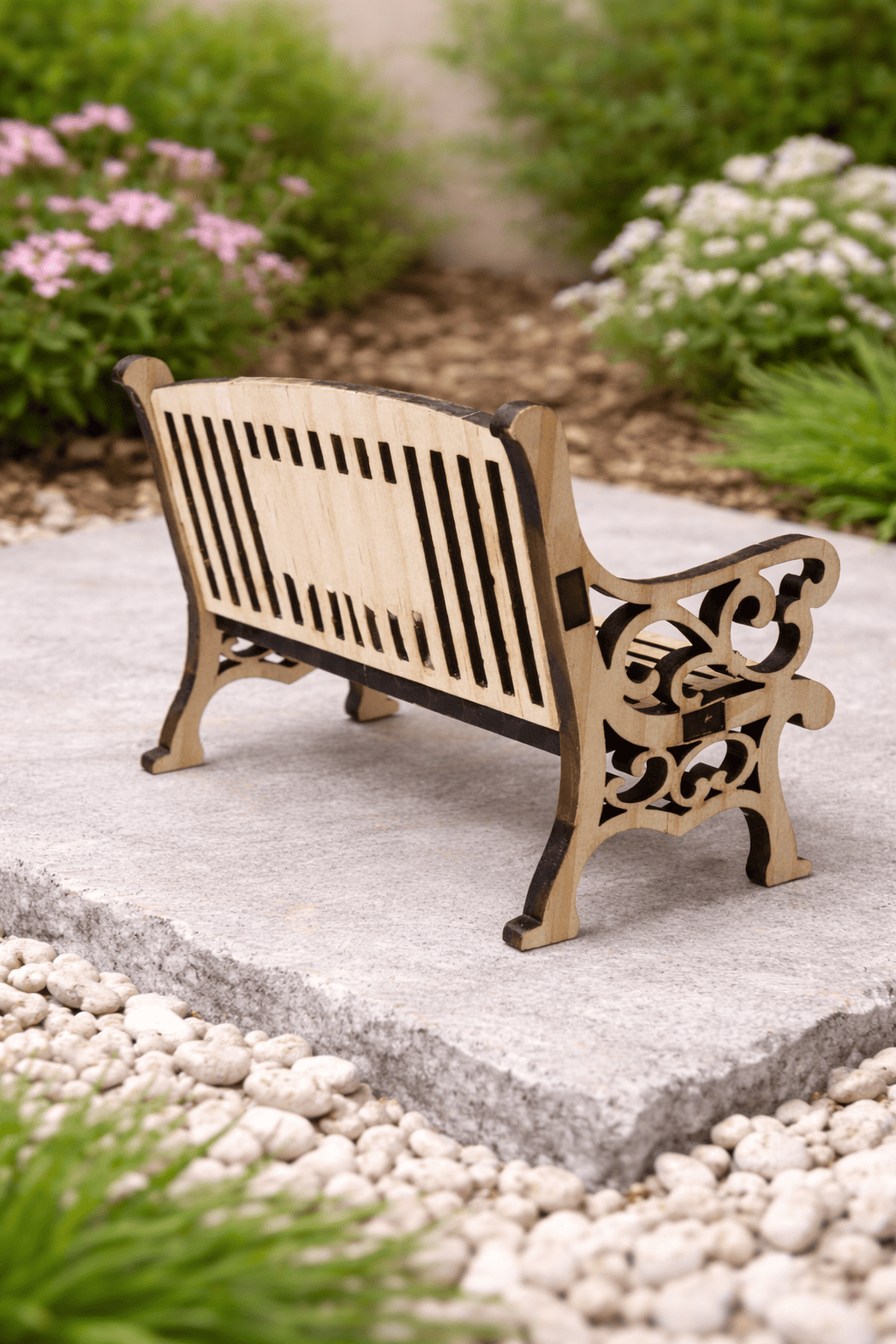 Crafted from wood and precision laser cut with delicate detailing, this miniature bench can be engraved with a name, short message, or meaningful date across the back panel.