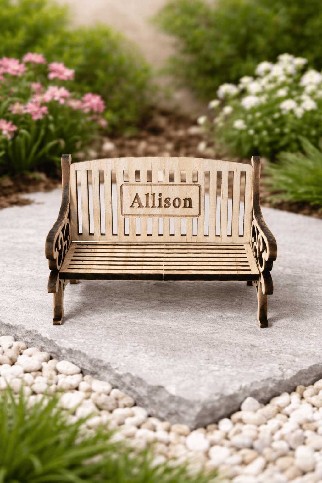 • Mini wooden memorial bench