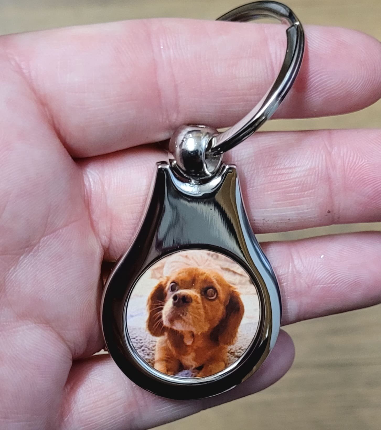 Simply upload your chosen photo and we’ll professionally print and securely insert it into this sleek, polished round keyring. Whether it’s a beloved pet, family photo, partner, child or special moment, this custom picture keychain makes a thoughtful everyday keepsake.