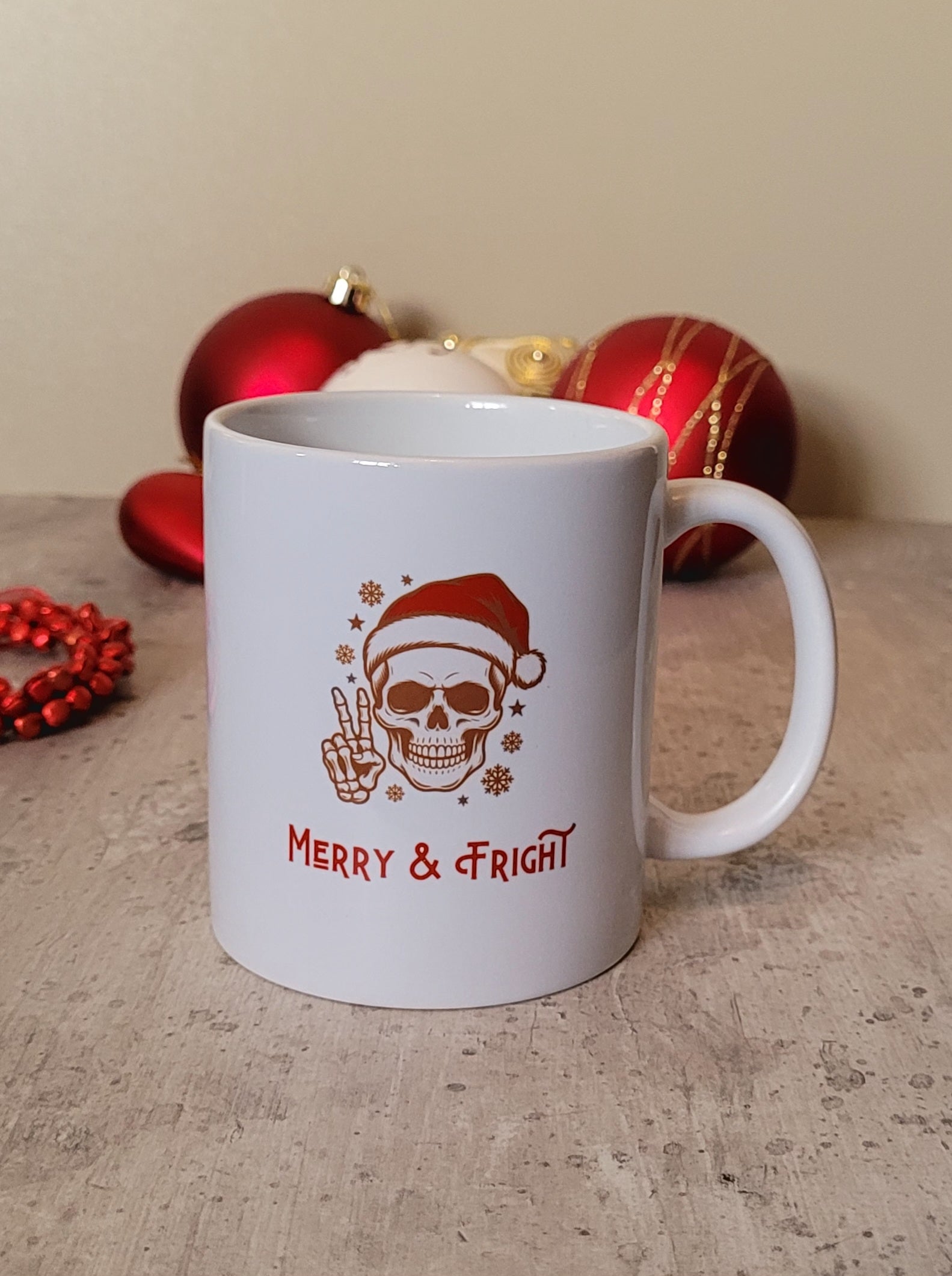 Merry & Fright Gothic Christmas Mug – Skull Santa Design | Spooky Xmas Gift UK