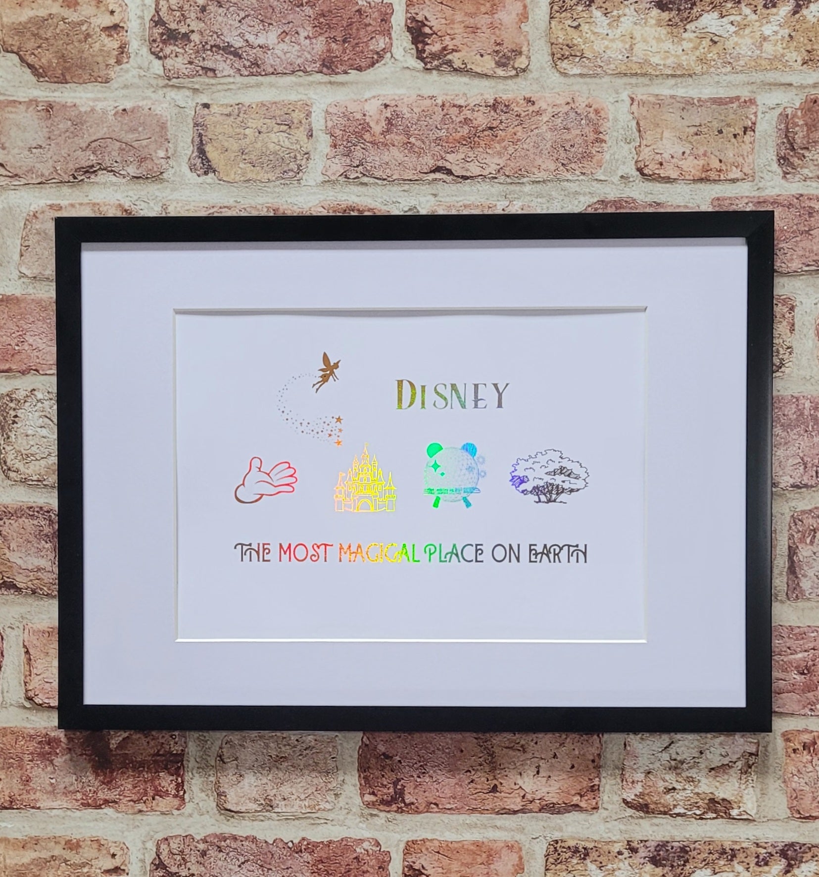 Bring a little Disney magic into your home with our personalised Disney-inspired foil framed prints. Each design is lovingly crafted using premium foil for a shimmering finish that captures the wonder of your favourite memories. Whether it’s a family trip to Disney, a special birthday, or simply celebrating your love for magical stories, this framed print makes the perfect keepsake or gift.